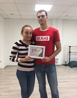 Ольга Ежова, благодаря тебе мы смогли получить такую красоту. В самом начале репетиций мы были зажаты и стеснительны, так как раньше опыта в танцах не было. Но с каждым приходом в студию и даже прогоном танца на парковке у дома нам становилось проще, стало даже затягивать.