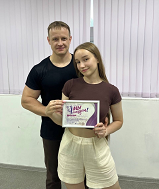 Ежова Оля, мы очень тебе благодарны за наши занятия! Танец получился очень красивый. Спасибо тебе за старания и поддержку)) За то что приезжала на доп тренировки в 8 утра)) мы рады, что поработали именно с тобой❤️